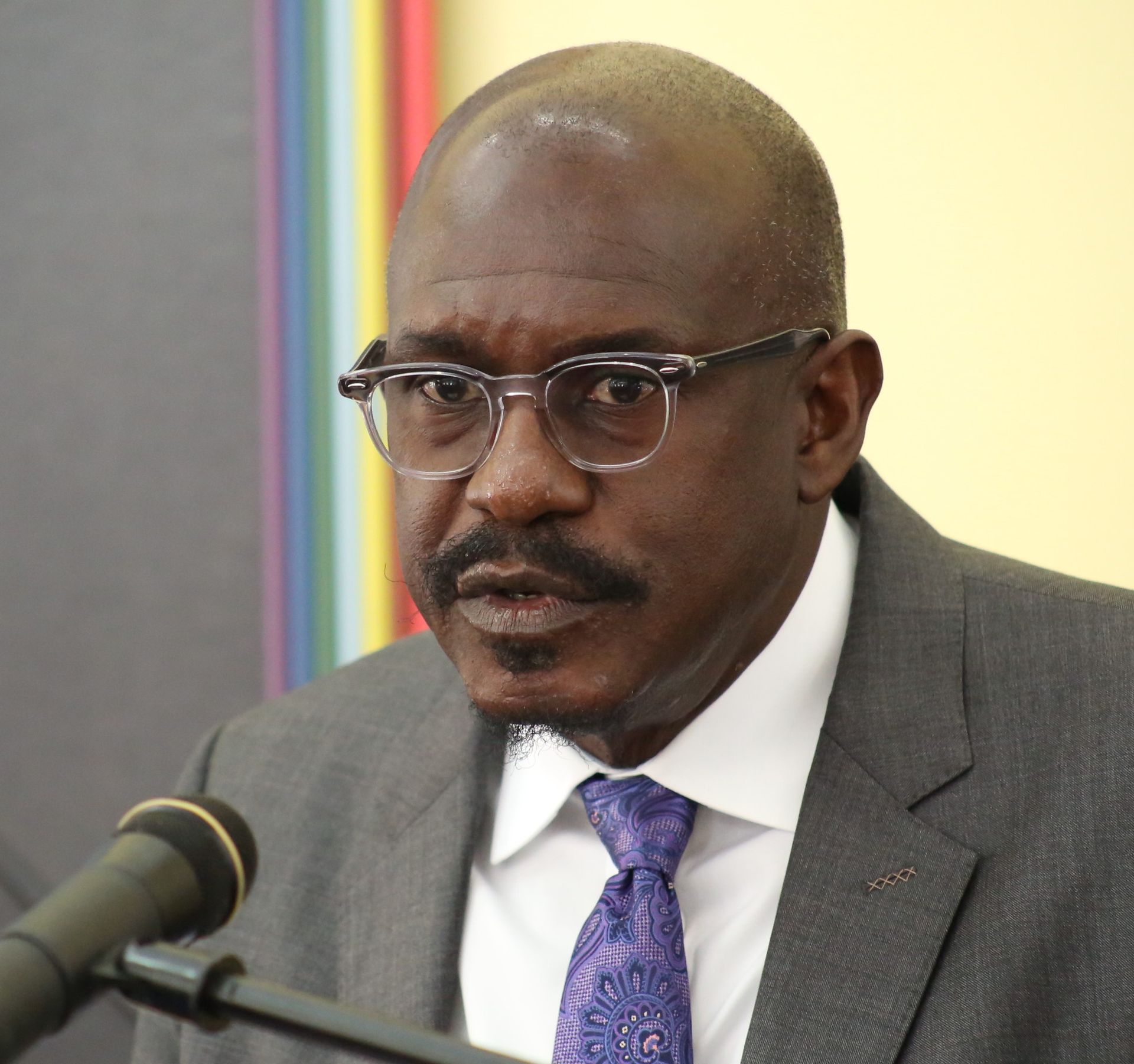 President of the Transport Industrial Workers Union (TIWU), Shawn Roberts, speaking with the media on Tuesday 21 April 2026. [Image by OTTO CARRINGTON]
