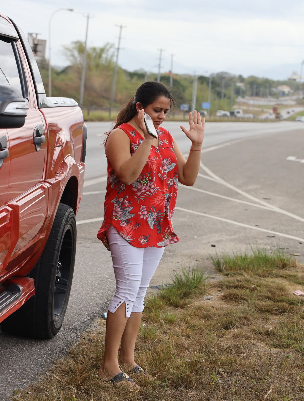 With tears rolling down her cheeks, the daughter of one of the patients diagnosed with the COVID-19 virus and warded in a critical condition at the Couva Hospital fell to her knees on the shoulder of the highway and prayed for her father to pull through on Saturday.