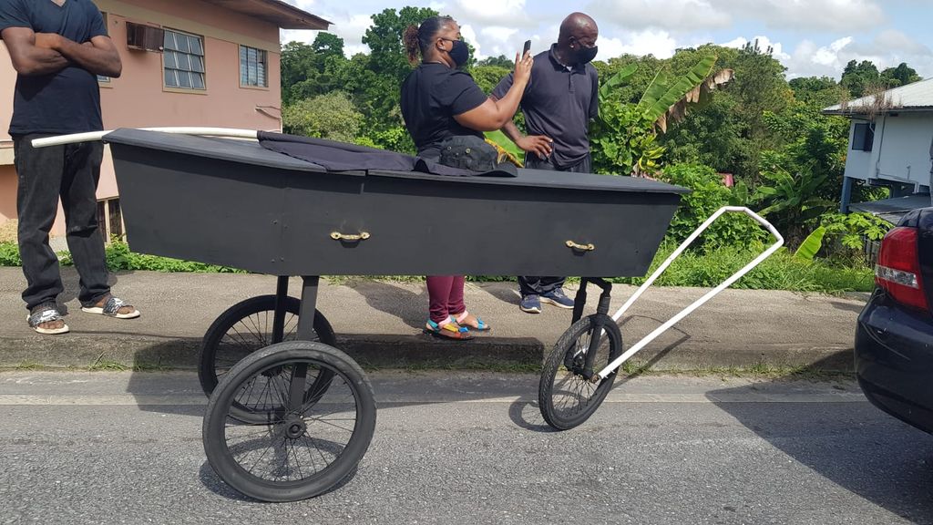 In a historic march to highlight rising COVID-19 deaths, community activist Victor Roberts is now wheeling a black coffin through the streets of Trinidad, calling on the government to improve the health sector.