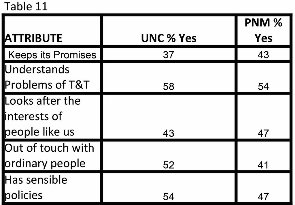 On which party “keeps its promises,” respondents gave the PNM a 43 per cent rating to the UNC’s 37 per cent.